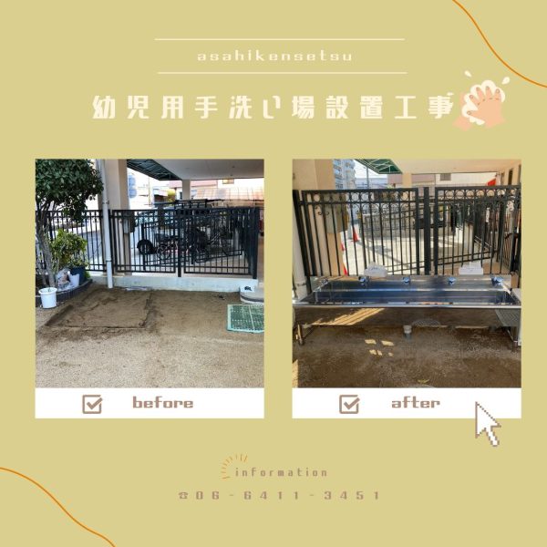 コロナ対策!玄関横に幼児用手洗い器を設置しました。