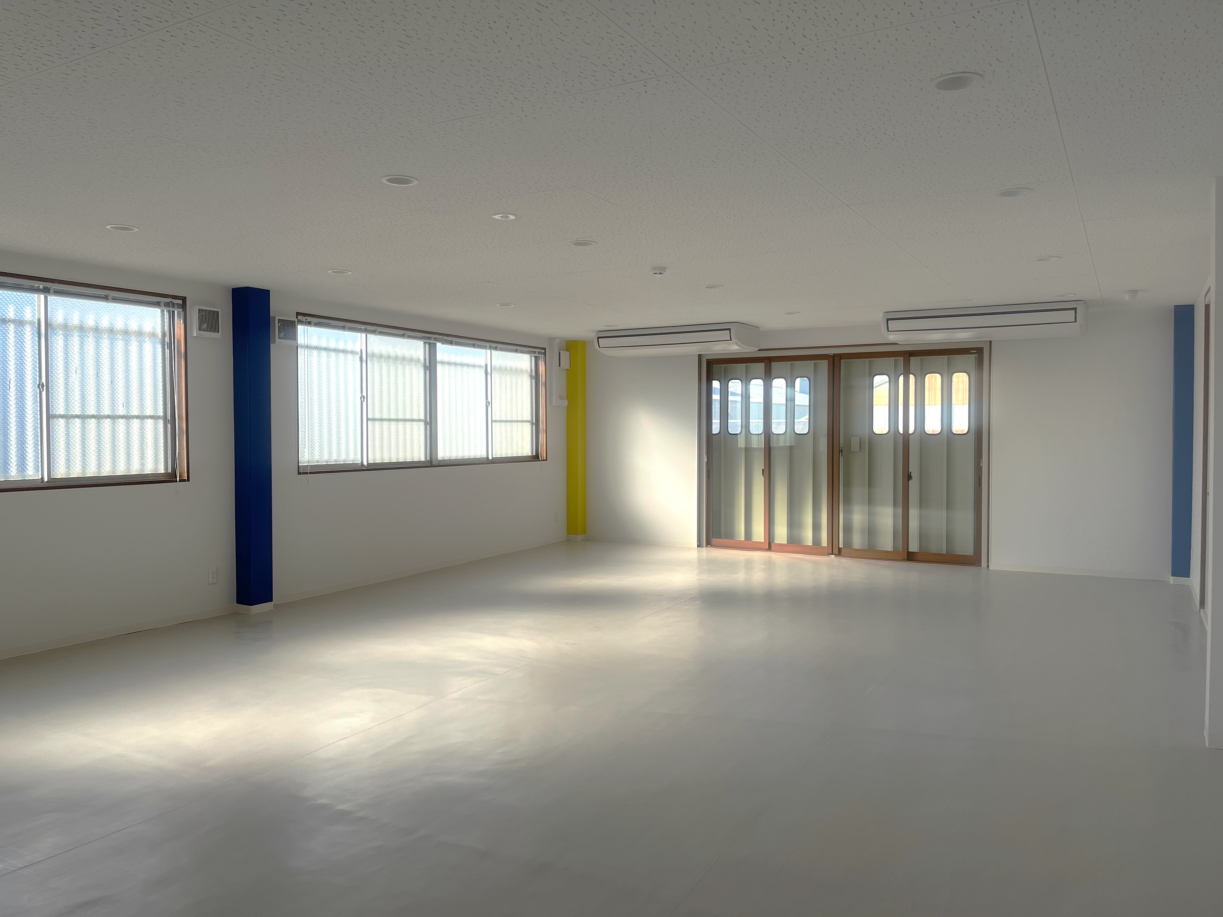 新オフィス改修工事-3F- 2024.6.28 施工事例#オフィス#製造工場・倉庫 3階には、リフレッシュルーム、シャワー室、トイレ、会議室を設置しました。 特に夏場には、シャワーを利用することで仕事の合間にリフレッシュできるスペースが確保されています。 また、会議室は広々とした設計で、多人数での会議にも対応可能です。 施工前 施工中 施工後 会議室 シャワー室 トイレ