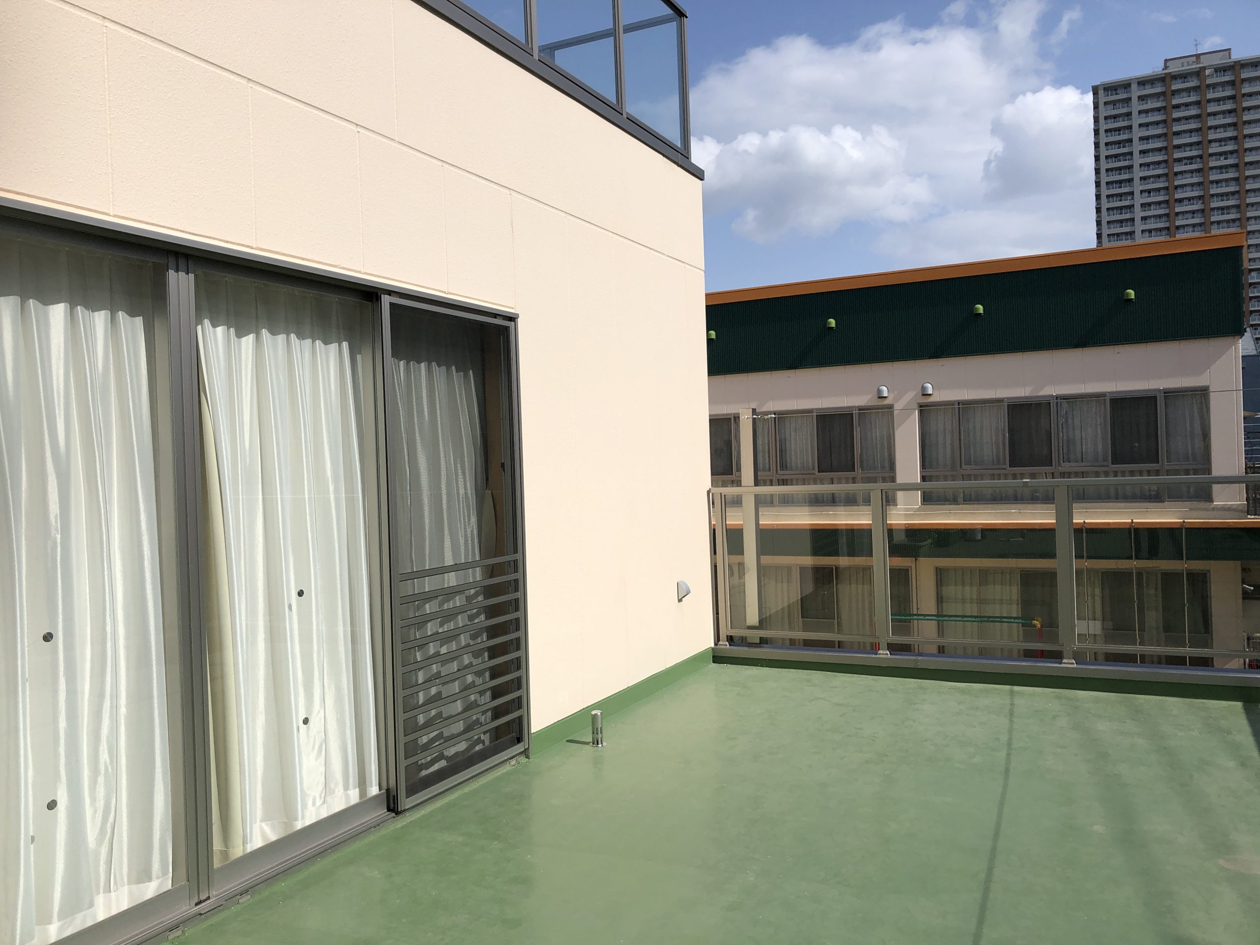 日向ぼっこの準備完了!テントポールを設置しました。 2024.10.25 施工事例 強い日差しの中でも子供たちが安心して日向ぼっこを楽しめる環境を整えるため、テントポールを設置しました。子供たちが遊ぶスペースを確保しつつ、日差しを遮ることができるよう配慮させていただきました。 施工前 施工後