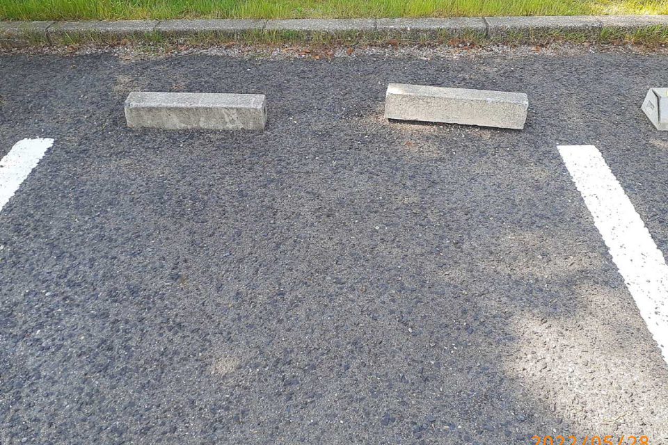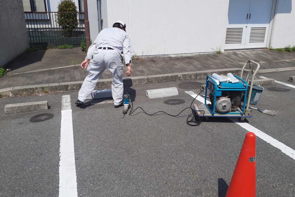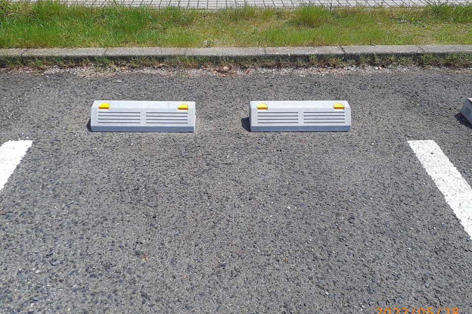 車輪止めブロックの補修を行いました。