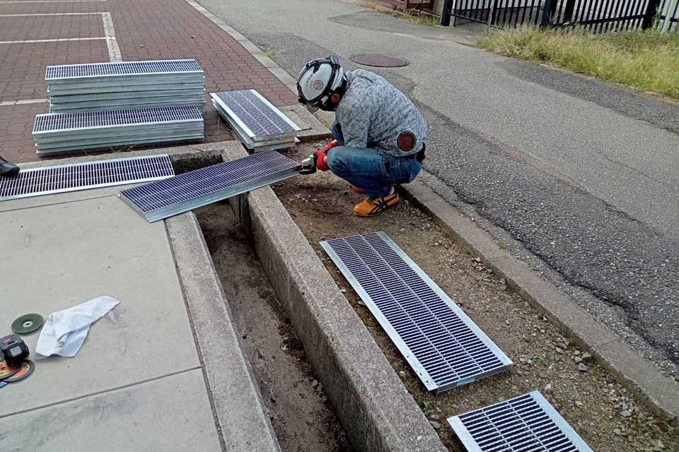 自転車置き場に溝蓋を設置しました。