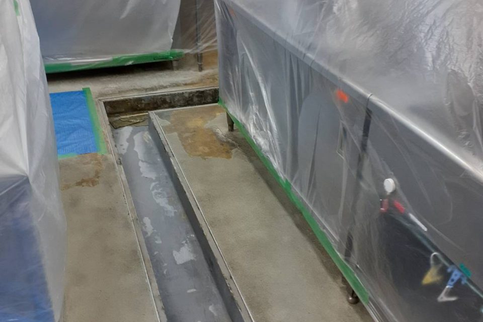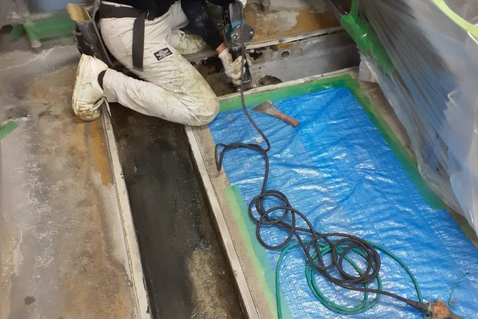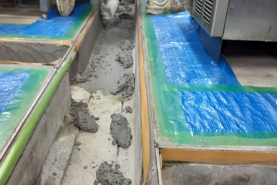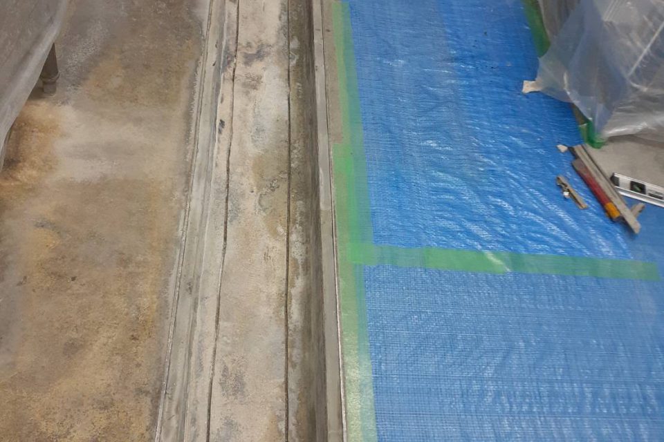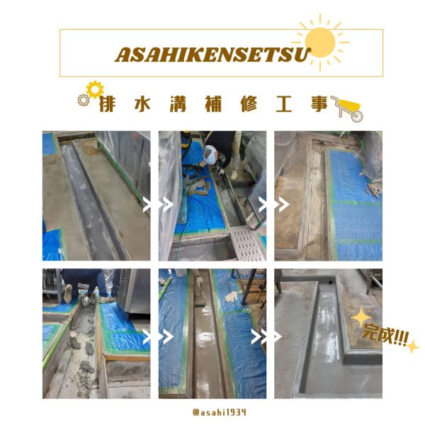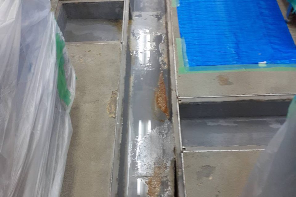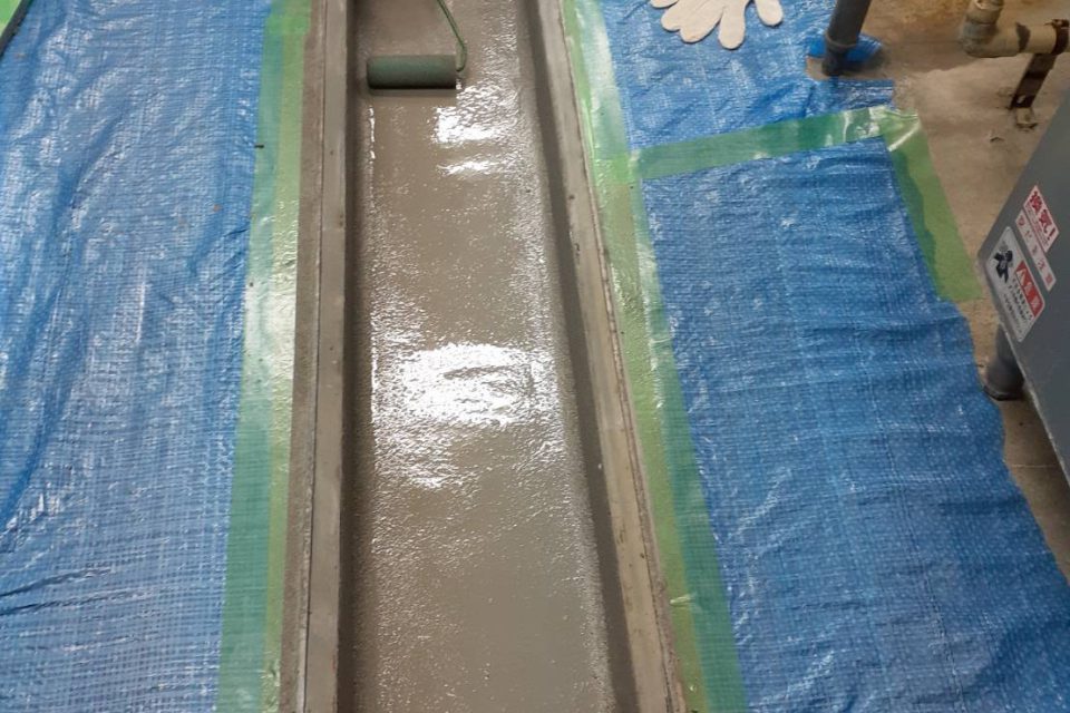 排水溝の防水が剥がれてきたので補修工事を行いました。