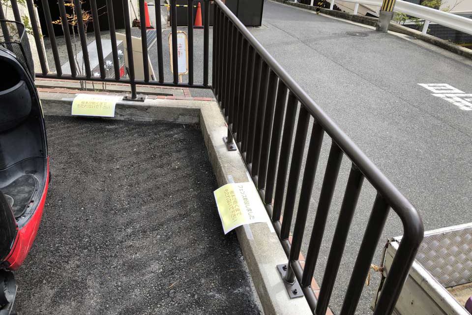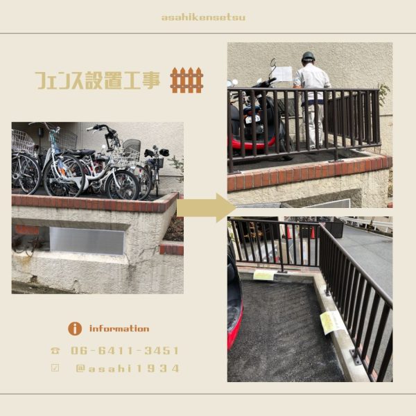 自転車転倒防止!フェンスを設置しました。